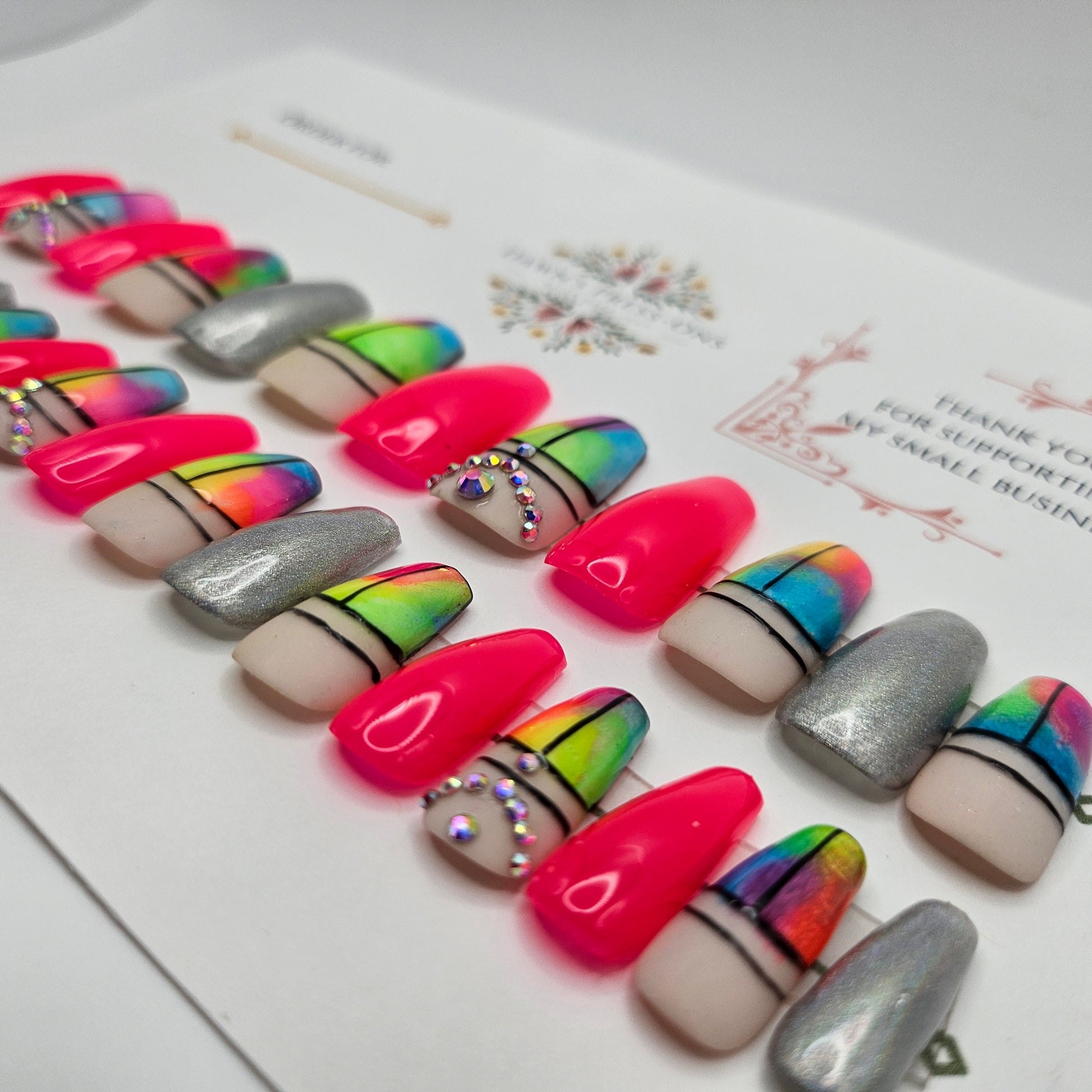 Every set is given a serial number. Should you lose a nail or need extra of a certain size we can look up the serial number. In our system, we will have a picture of the nails and list of products used so we can give you as close to an exact replica as possible.