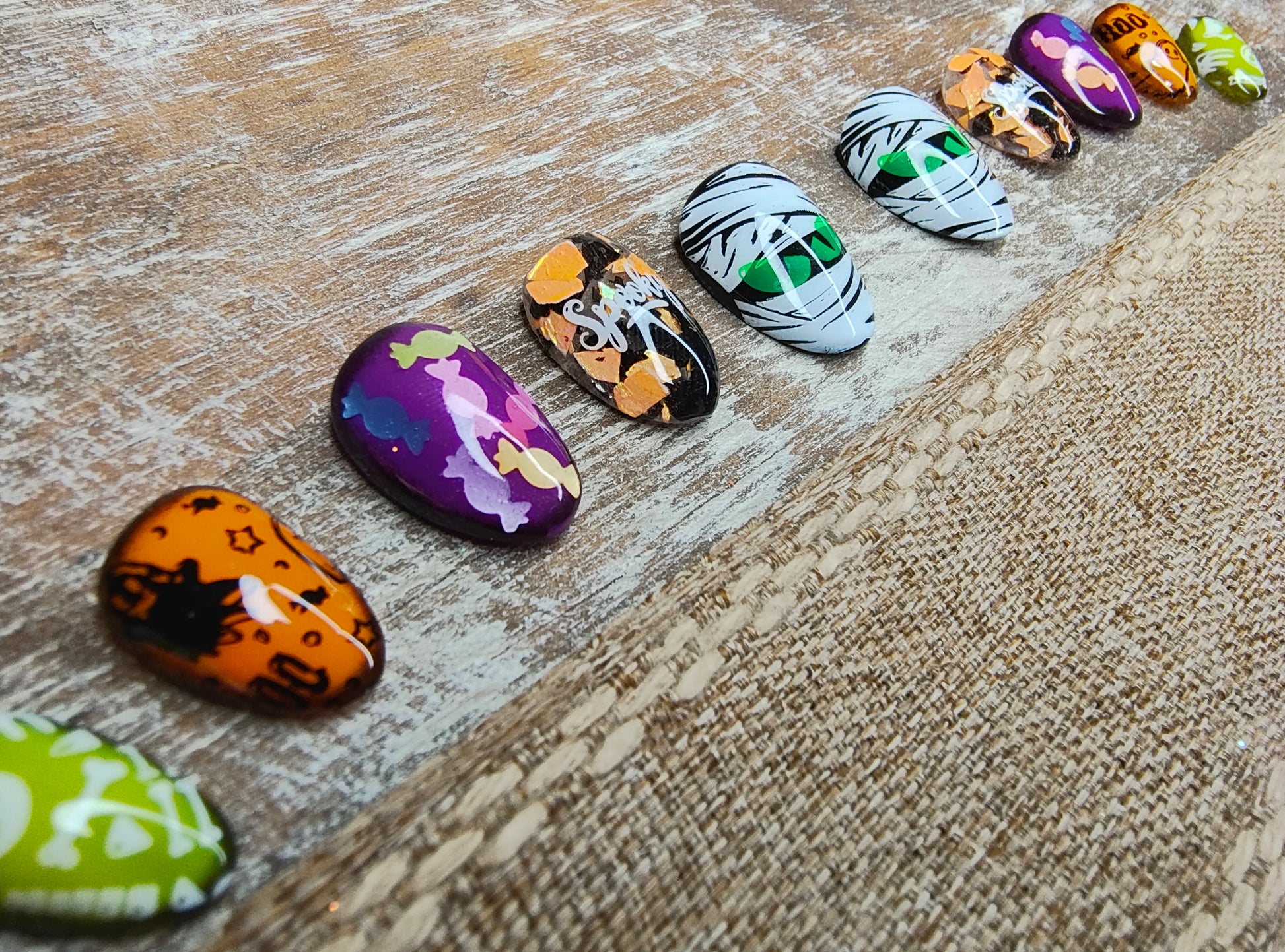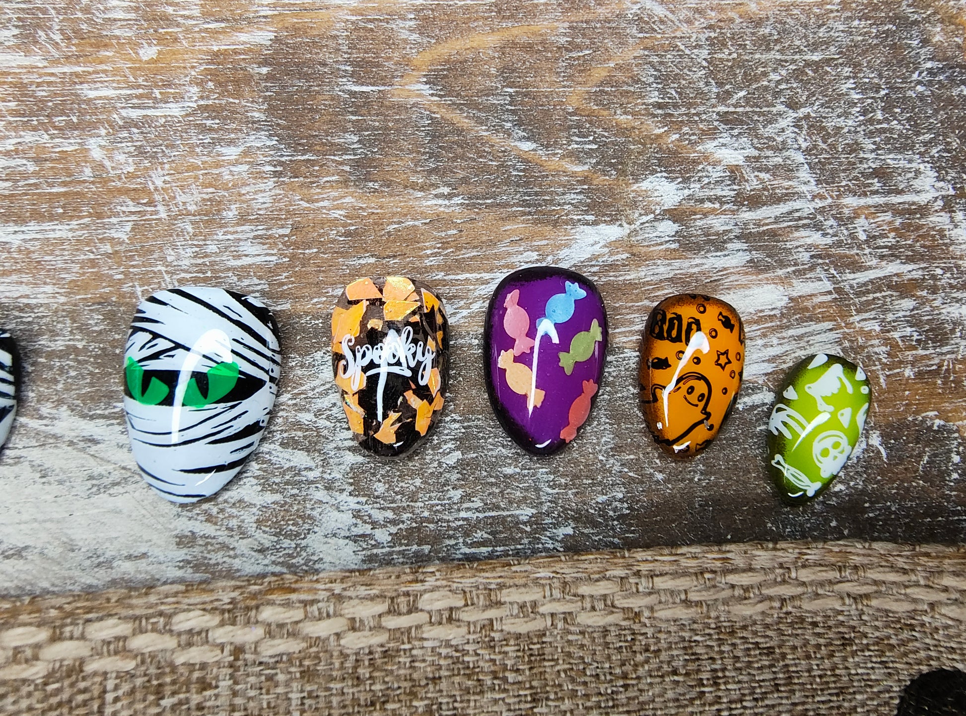 Fun, whimsical, cute mummy nails with a candy theme