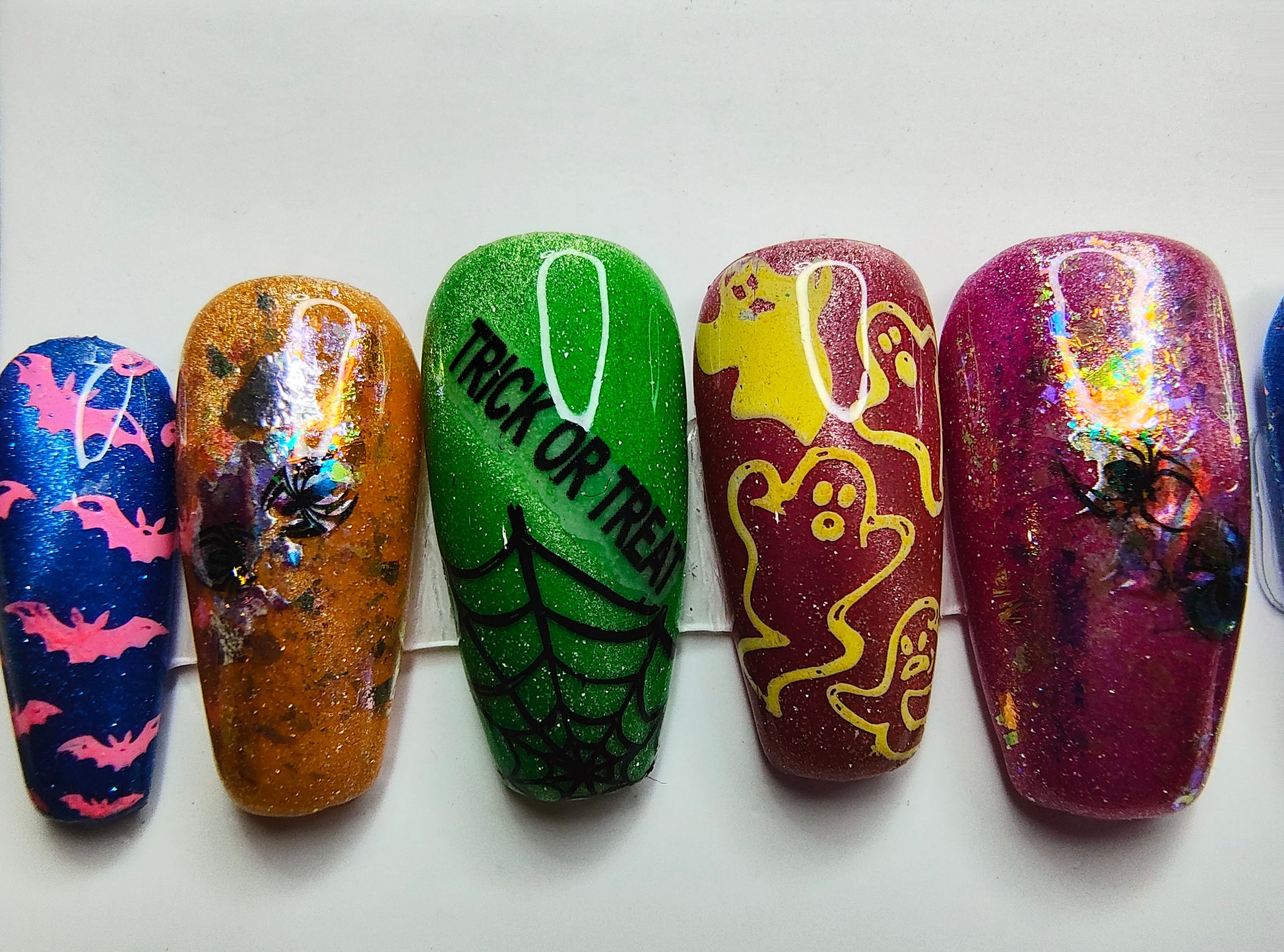 Neon cat eye backgrounds, cute glow in the dark ghosts and bats, and some super sparkly spiders make this the ideal Halloween set